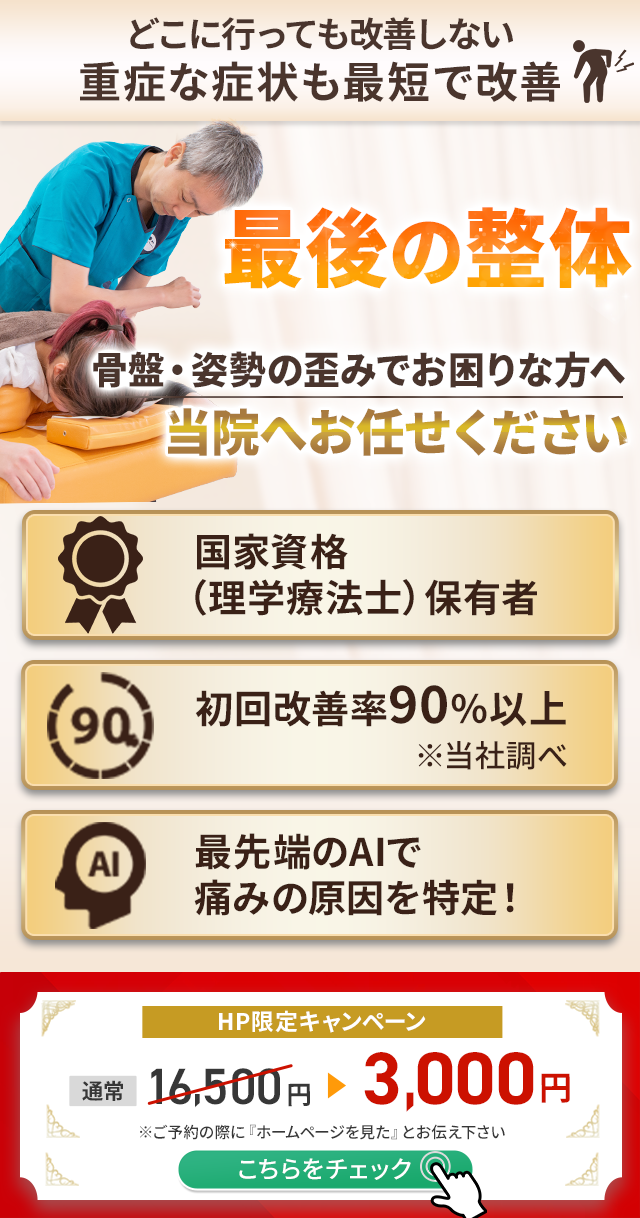 もしあなたが骨盤・姿勢の歪みでお悩みでしたら、お気軽に当院までご相談ください。